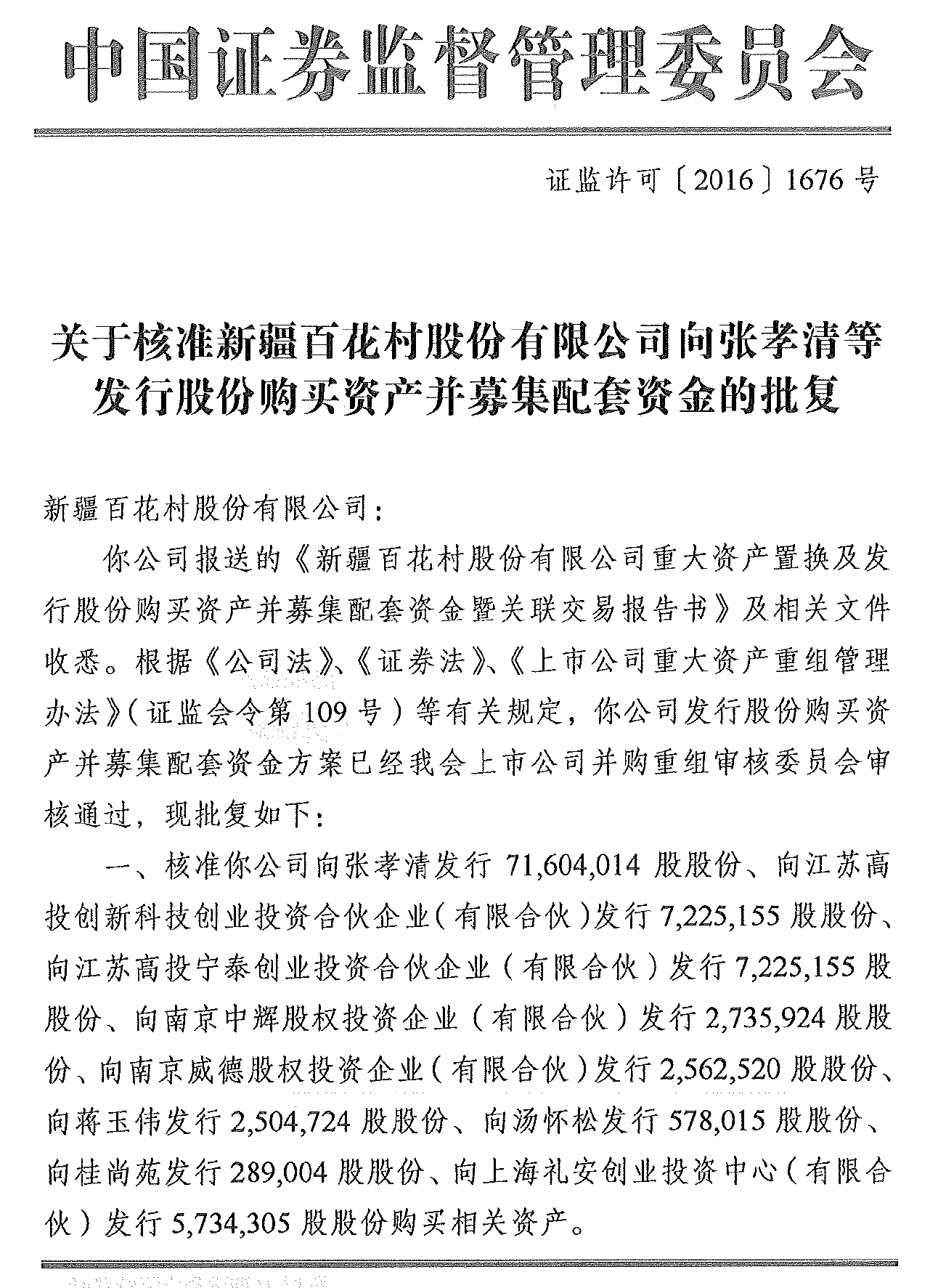 2016年8月1日,華威醫藥收到中國證券監督管理委員會“關于核準新疆百花村股份有限公司向張孝清等發行股份購買資產并募集配套資金的批復”文件。在完成相關手續后,華威醫藥將成為百花村(600721)全資子公司,百花村主營業務也將正式轉型為醫藥大健康產業。華威醫藥將作為上市公司主營業務獨立開展運營,在上市公司和資本市場的平臺上,華威醫藥將一如既往為合作伙伴提供更專業、更規范、更有保障的藥物研發全流程服務及一體化的解決方案。
