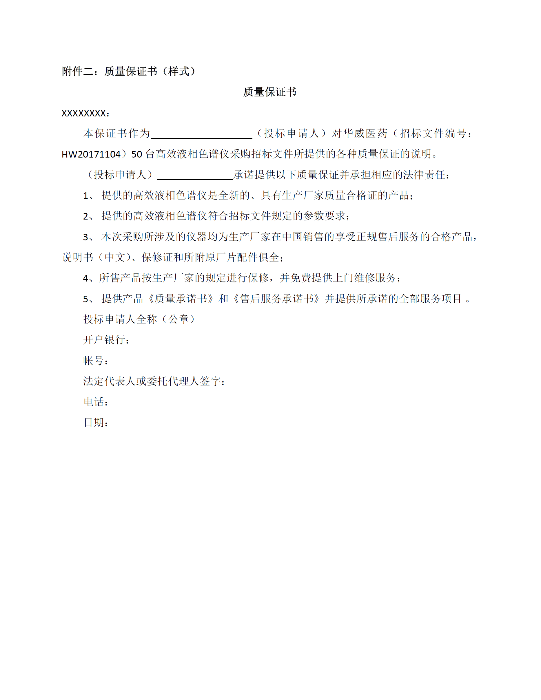 華威醫藥50套高效液相采購項目招標公告