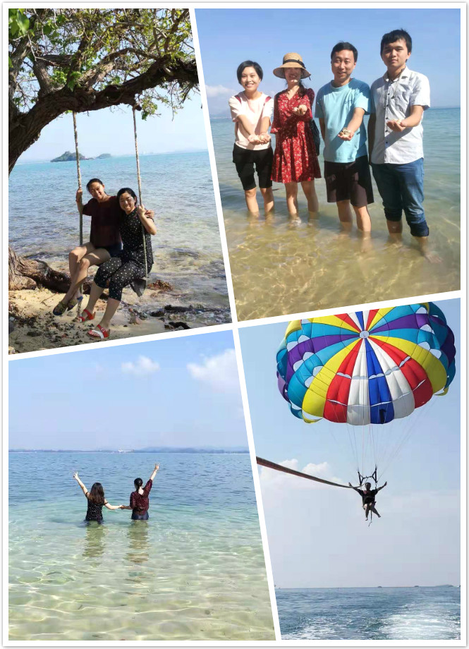 在泰國除了各式各樣的寺廟建筑,海島也是絕不能錯過的。本次優(yōu)秀員工之行來到了以沙子聞名的沙美島。這里的沙子黃里透白,如面粉一樣細(xì)嫩,鋪成又長又寬的沙毯,仿佛為太平洋鑲上了金色的花邊一般。小伙伴們在沙美島上欣賞綺麗的星空朗月,參加當(dāng)?shù)靥厣捏艋鹜頃w驗(yàn)刺激的海島游樂項(xiàng)目,度過了一段難忘的美好時光。