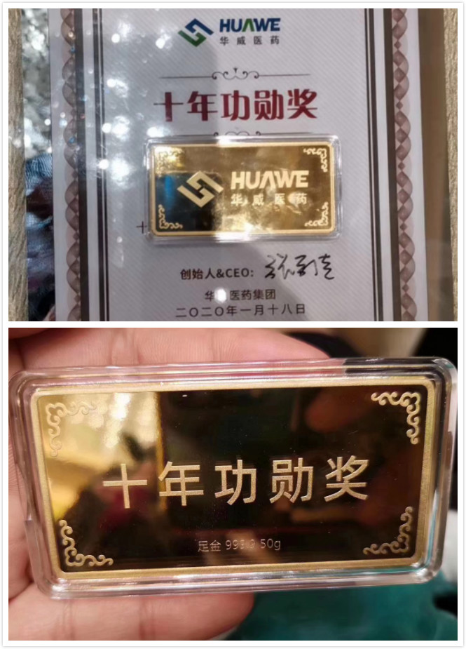 “他們用睿智,在科技發展的舞臺上奏出時代的新樂,他們激情澎湃,用行動詮釋著新一代華威人的卓然風采”2020年除了優秀員工/勞動模范/優秀團隊等各項殊榮并獲得出國旅游的獎勵外,今年的總裁特別獎,更讓小伙伴們驚喜不已!公司獎勵在華威工作滿十年并作出特別貢獻的功勛員工,每人一塊定制版50g “足金金條”!超羨慕!