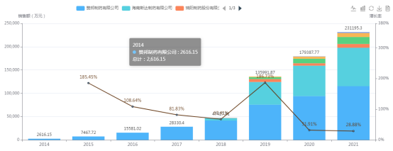 (2)市場容量大:國內2021年的銷售額超過23億元,同比增長28%,市場增速可觀,仍有 很大開拓空間。