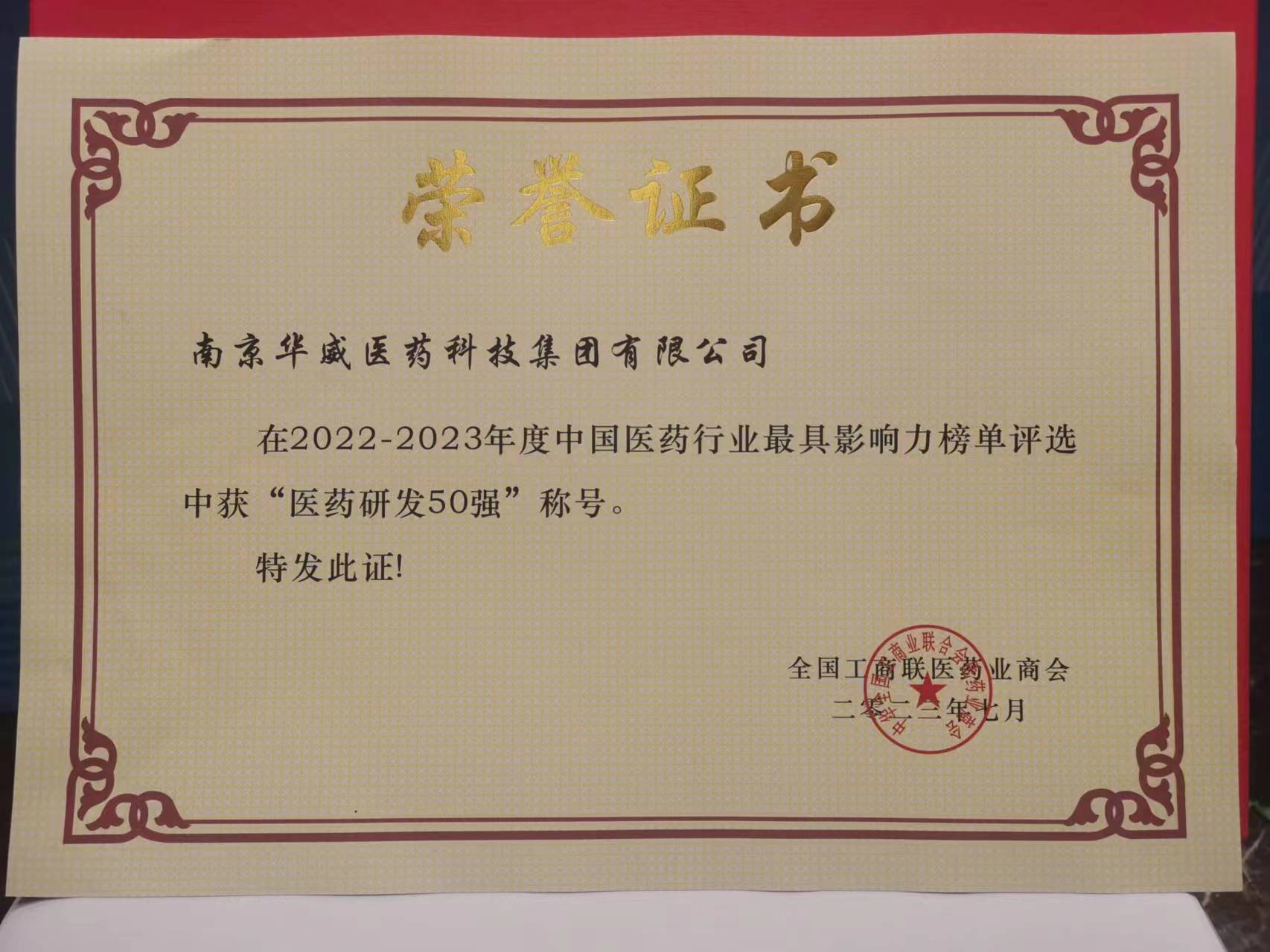 2023年7月4日,由全國工商聯醫藥業商會、黑龍江省工商聯、黑龍江省發改委共同主辦的“2022-2023年度中國醫藥行業最具影響力榜單發布會第十五屆中國醫藥產業發展高峰論壇”正式發布了——“2022-2023年度中國醫藥行業最具影響力榜單”,華威醫藥憑借自身雄厚實力再次榮耀入選“中國醫藥研發50強企業“。